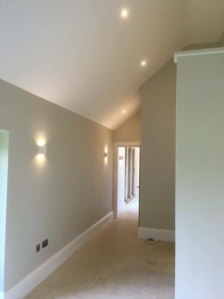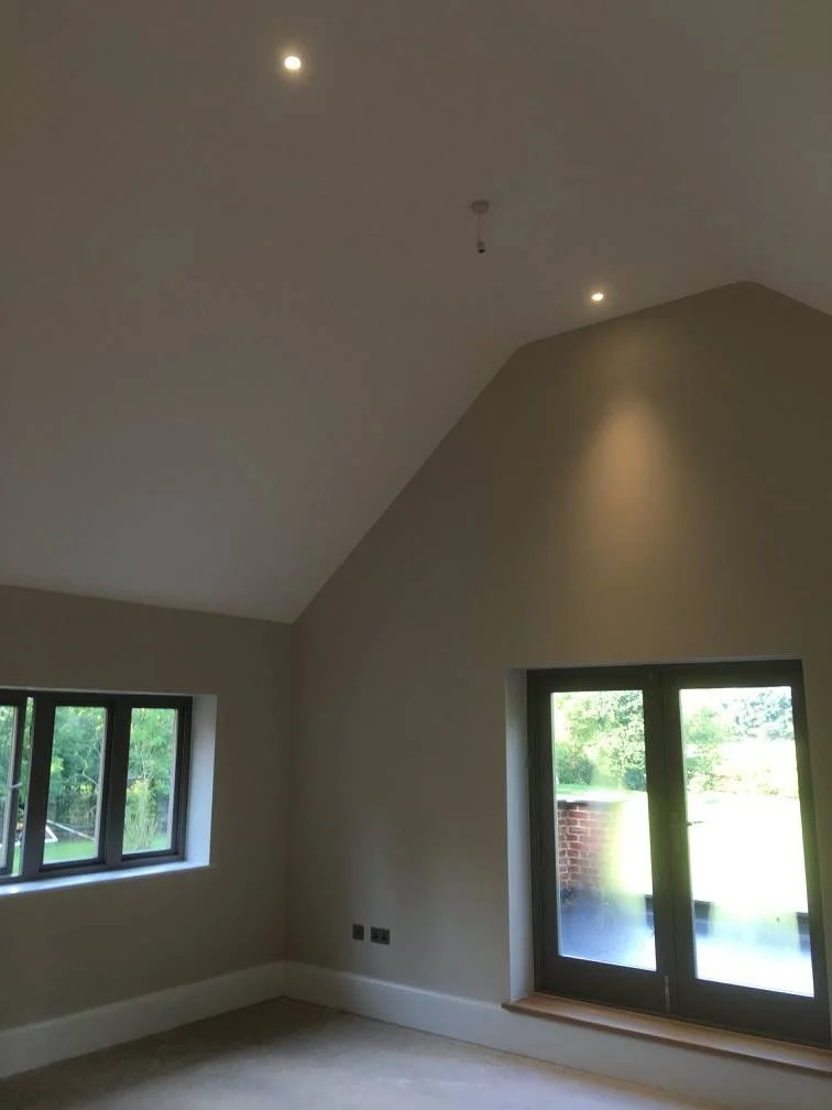 This was a project we undertook in Lapworth a 3 story, 5 bedroom new build with gym/cinema room in the basement. Using the very best in home automation with the latest Lutron Homework’s QS this enables lighting to be controlled via a smartphone/tablet. Heatmiser heating controls, Heat recovery system and Collingwood lighting. All upstairs bedrooms having vaulted ceilings so was a real challenge getting the right type of lighting but with the client happy with the results we managed to pull it off all finished to a high standard.