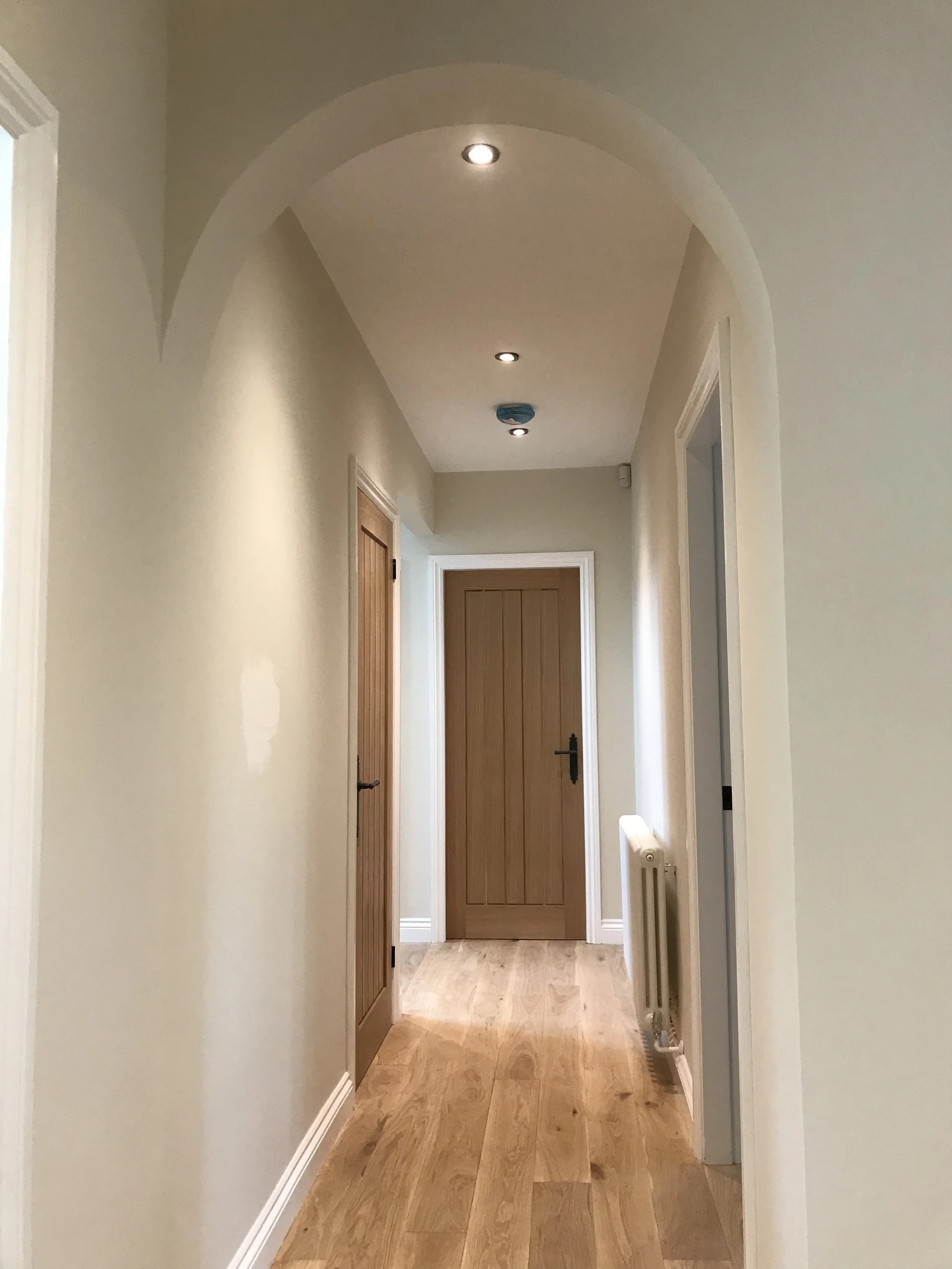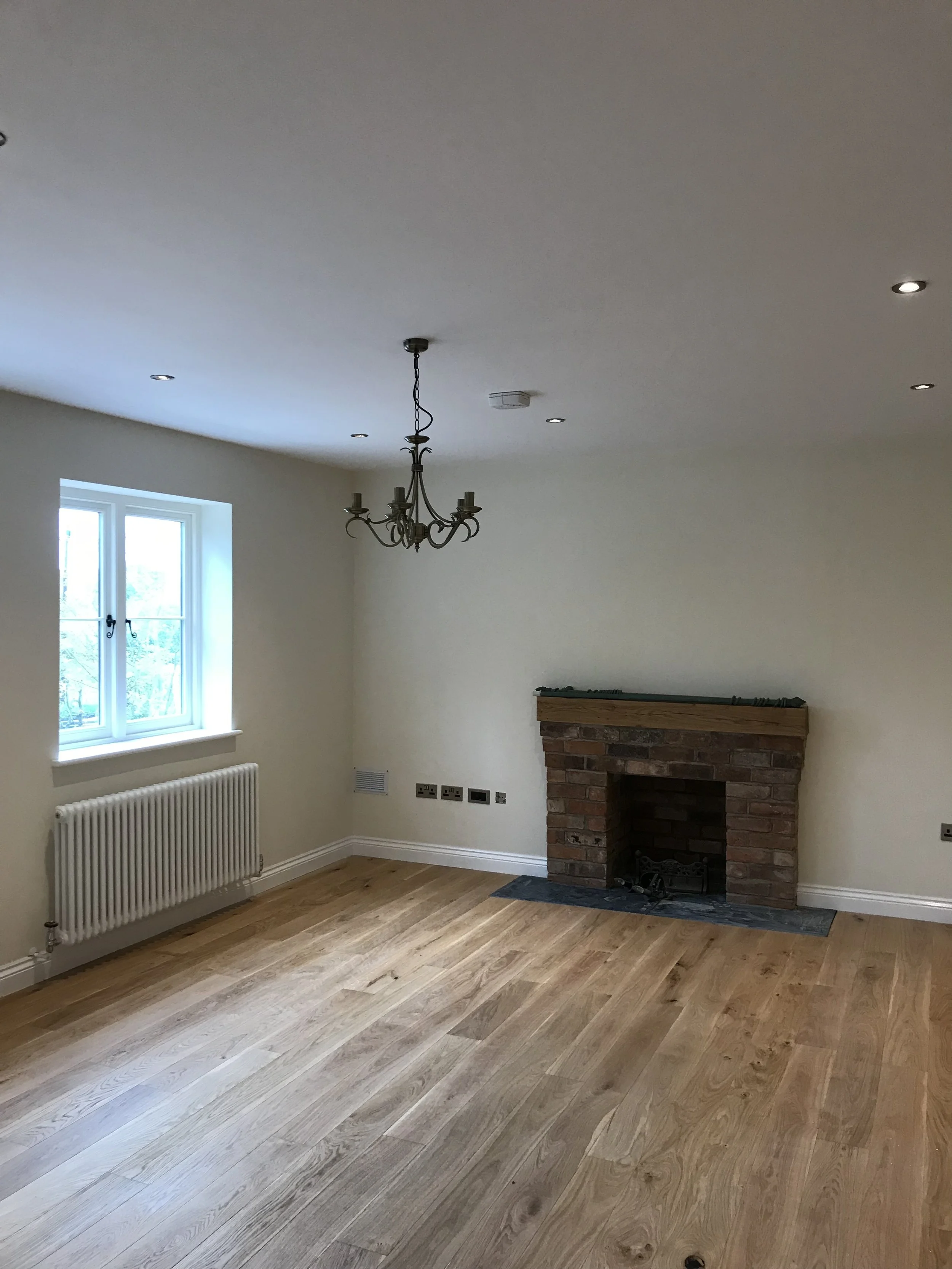 This is a job we undertook over in Hunningham, the clients wanted a country feel but all the modcons you would expect from any new home. Rooms with downlights, brushed steel sockets, underfloor heating and external lighting.